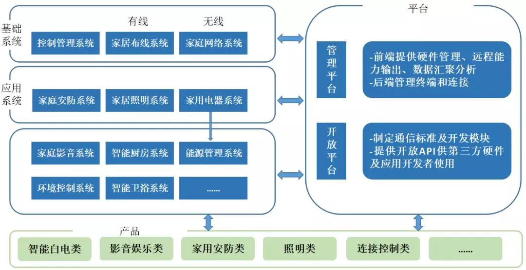 智能家居平臺的概念與Facebook、蘋果App應(yīng)用商店類似,智能家居平臺商制定通信標(biāo)準(zhǔn)及開發(fā)模塊等,然后提供開放API(應(yīng)用程序編程接口)供第三方硬件及應(yīng)用開發(fā)者使用,所有的硬件及應(yīng)用產(chǎn)品就可以無縫連接至平臺操作系統(tǒng),進(jìn)而平臺商、第三方硬件及應(yīng)用開發(fā)者、用戶構(gòu)成一個全新的智能家居平臺生態(tài)鏈。目前國內(nèi)市場上活躍度比較高的有青島海爾家居集成股份有限公司、全智慧科技(北京)有限公司、美的集團股份有限公司(公開A股)、小米科技有限責(zé)任公司、深圳市電陶思創(chuàng)科技有限公司、北京京東世紀(jì)貿(mào)易有限公司、北京百度網(wǎng)訊科技有限公司、阿里巴巴(中國)有限公司等8家企業(yè)。
