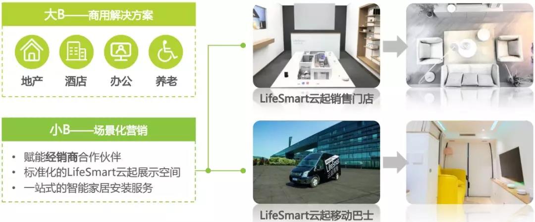LifeSmart云起的全屋智能解決方案主要面向高端用戶群體,通過B端的線下渠道銷售給最終用戶。一方面,LifeSmart云起與房地產(chǎn)、酒店、養(yǎng)老等行業(yè)客戶達(dá)成戰(zhàn)略合作,采用項目制的方式落地商用解決方案。同碧桂園聯(lián)手打造的馬來西亞森林城市智能豪宅、為阿里巴巴定制的智能會議系統(tǒng)等都是其中的標(biāo)桿案例。另一方面,LifeSmart云起基于眾多中小經(jīng)銷商客戶,構(gòu)建起穩(wěn)固的銷售渠道。通過向經(jīng)銷商輸出標(biāo)準(zhǔn)化的展示空間和服務(wù)體系,可以由智能機器人完成LifeSmart云起樣板間內(nèi)的產(chǎn)品介紹和演示。依靠可視化的智能家居體驗與一站式的安裝服務(wù),LifeSmart云起不僅可以觸達(dá)到廣泛的終端消費者,更能夠有效實現(xiàn)用戶流量的轉(zhuǎn)化。
