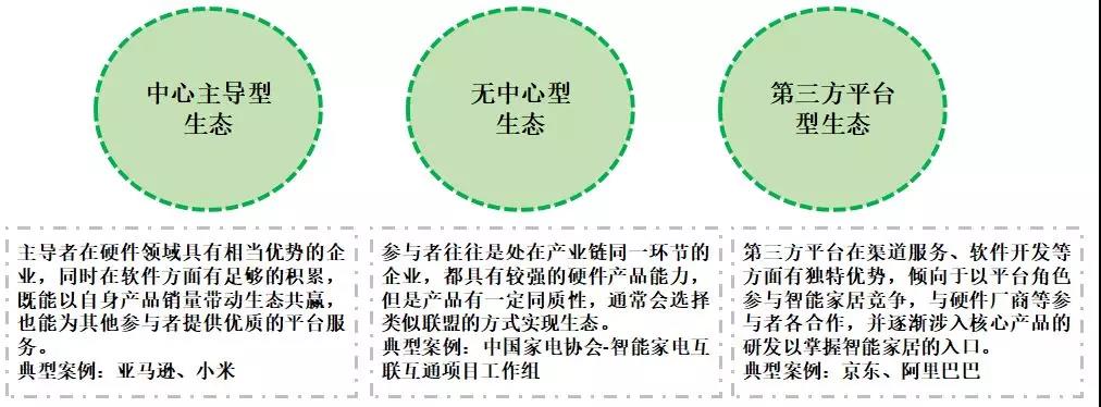 智能家居行業(yè)涉及面非常廣泛,各垂直細(xì)分領(lǐng)域之間壁壘高,完整的智能家居生態(tài)不是某個或某幾個獨立的智能單品所能代表的。行業(yè)本身的特性意味著一家獨大的情形難以出現(xiàn),勢必要跨界融合,將不同環(huán)節(jié)和細(xì)分領(lǐng)域的參與者囊括進(jìn)來。盡管越來越多的企業(yè)開始秉承著開放的心態(tài)達(dá)成合作,但對于生態(tài)的具體形態(tài)、每個參與者的位置和利益分配的方式尚無定論。通常,在行業(yè)內(nèi)有一定領(lǐng)先優(yōu)勢的頭部企業(yè),大多希望憑借既有優(yōu)勢主導(dǎo)生態(tài)的形成和發(fā)展,而中小企業(yè)和創(chuàng)業(yè)公司則更傾向于選擇加入已有的生態(tài),利用生態(tài)內(nèi)的資源發(fā)揮自我價值。