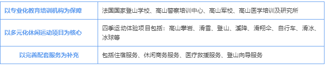 (2)沙木尼擁有完善的休閑產(chǎn)業(yè)鏈配套。向?qū)Х丈?,專業(yè)的向?qū)Ч緭碛谐^150名注冊職業(yè)登山向?qū)?,能為游客提供沙木尼地區(qū)的全方位攀登、滑雪服務;住宿服務上,星級酒店、青年旅舍、家庭旅館、公寓、露營營地共有50余家,并有房屋租賃、度假中心等物業(yè)接待服務。商業(yè)服務上,共有登山、滑雪及紀念品等40余家體育用品商店,有提供沙木尼傳統(tǒng)美食和西式休閑美食的餐飲娛樂服務;醫(yī)療服務上,形成“急診+醫(yī)院+研究中心”的綜合醫(yī)療服務體系,如:夏蒙尼醫(yī)院、高原生態(tài)系統(tǒng)研究中心、山地醫(yī)學培訓與研究所;觀光交通上,纜車道于1955年正式啟用,將海拔1035米的沙木尼和海拔3842米的南針峰連接起來,不但可使游客領略到冰雪風景,更為登山者和滑雪者帶來了極大便捷。