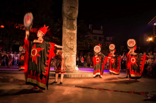 “彝鄉(xiāng)戀歌”是偉光匯通打造的一項以“天天長街宴、夜夜火把節(jié)”為主題的彝族原生態(tài)歌舞伴餐類旅游產(chǎn)品。通過連通的環(huán)形水上吊腳樓這一特殊用餐環(huán)境,“彝家八大碗”這一特色餐品,營造和再現(xiàn)了彝族人民擺設長街宴同族共聚、誠摯待客的餐飲文化。而在品嘗彝家美食之余,中央水榭舞臺的表演更是精彩紛呈——跳菜、敬酒歌、服飾展、猜新娘互動等等,讓游客在享受美食的同時,感受原汁原味的彝族風情。