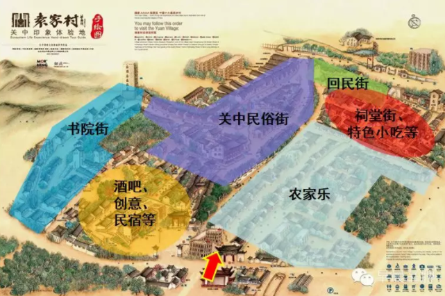 袁家村采用統(tǒng)一規(guī)劃,村容村貌體現(xiàn)了秦風漢韻的格調(diào)。統(tǒng)一運營,統(tǒng)一接受袁家村的管理辦法及模式,將關中地區(qū)民俗傳統(tǒng)文化與現(xiàn)代旅游的結合,將民俗小吃、茶館、技藝、游樂與現(xiàn)代的文化創(chuàng)意、休閑體驗生活方式結合在了一起。