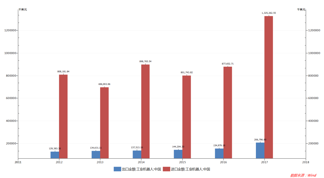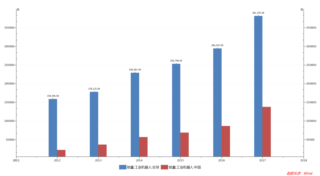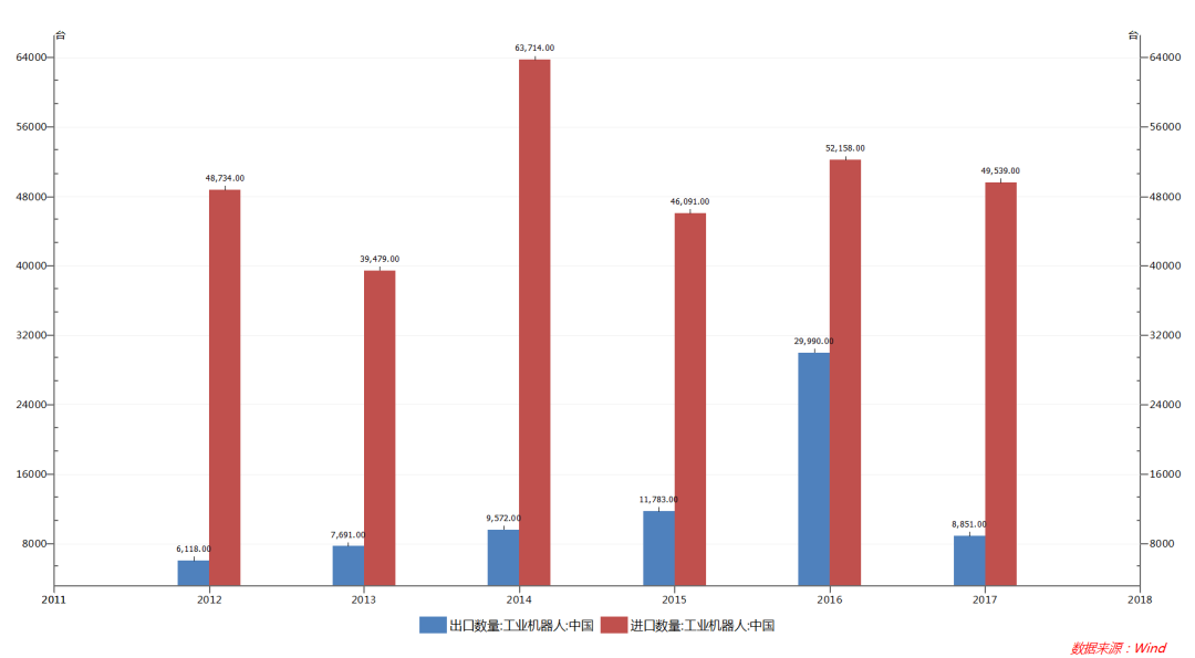 2018年1-12月,我國工業(yè)機器人產量達14.7萬臺,同比增長12.2%;其中12月份產量達11961臺。受國內宏觀經濟下行,下游汽車、3C、新能源等行業(yè)投資放緩和中美貿易戰(zhàn)的影響,國內工業(yè)機器人行業(yè)發(fā)展壓力逐步顯現,6月、7月、8月增幅相比前幾個月35%的增速大幅下降。但工業(yè)機器人行業(yè)短期的增速放緩并不能改變機器代人的大趨勢。我國自動化改造空間巨大,制造業(yè)轉型升級迫切;人口紅利逐步消失,老齡化問題嚴重,勞動力出現短缺;疊加國家政策的大力支持,我國工業(yè)機器人行業(yè)未來發(fā)展空間仍然巨大。