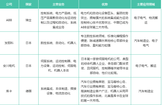 在世界工業(yè)機器人行業(yè)中,以瑞士的ABB、德國的庫卡、日本的發(fā)那科和安川電機最為著名,并稱為工業(yè)機器人“四大家族”。它們在亞洲市場上同樣有著舉足輕重的地位,在中國工業(yè)機器人市場上占據大半江山,幾乎壟斷了機器人本體制造、焊接等高端領域。