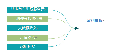 目前,共享單車(chē)的盈利來(lái)源主要分五類(lèi),第一類(lèi)是基本單車(chē)出行服務(wù)收費(fèi),第二類(lèi)是注冊(cè)押金和預(yù)存費(fèi)的增值收入,第三類(lèi)是大數(shù)據(jù)收入,第四類(lèi)是廣告收入,第五類(lèi)是政府補(bǔ)貼。