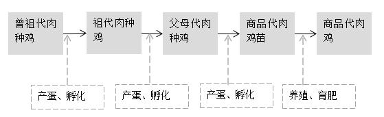 我國白羽肉雞祖代種雞養(yǎng)殖企業(yè)主要從國外引進(jìn)祖代肉種雞苗,繁育父母代肉種雞苗出售給父母代肉種雞養(yǎng)殖企業(yè),父母代肉種雞產(chǎn)蛋孵化出商品代雛雞銷售給代養(yǎng)戶,商品代肉雞經(jīng)屠宰加工后成為雞肉產(chǎn)品。白羽肉雞的目標(biāo)客戶主要是肯德基、麥當(dāng)勞等快餐消費及分割產(chǎn)品出口。