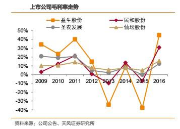 受產(chǎn)品價格彈性影響,越靠近上游,盈利能力的波動越大。財務(wù)指標(biāo)上,毛利率、凈利率的波動,益生股份>民和股份>圣農(nóng)發(fā)展>仙壇股份。