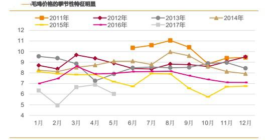 從歷史數(shù)據(jù)來看,年內(nèi)禽類產(chǎn)品價格具有季節(jié)性,年內(nèi)一般有兩輪上漲: