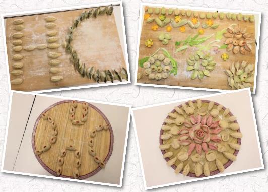 不一會兒,一“只只”精巧的餃子誕生了,元寶餃子、月牙餃子、小魚餃子、玫瑰餃子……不同的形狀、不同的顏色、不同的寓意,處處“飄散”著溫暖、溫馨和感動(dòng)。
